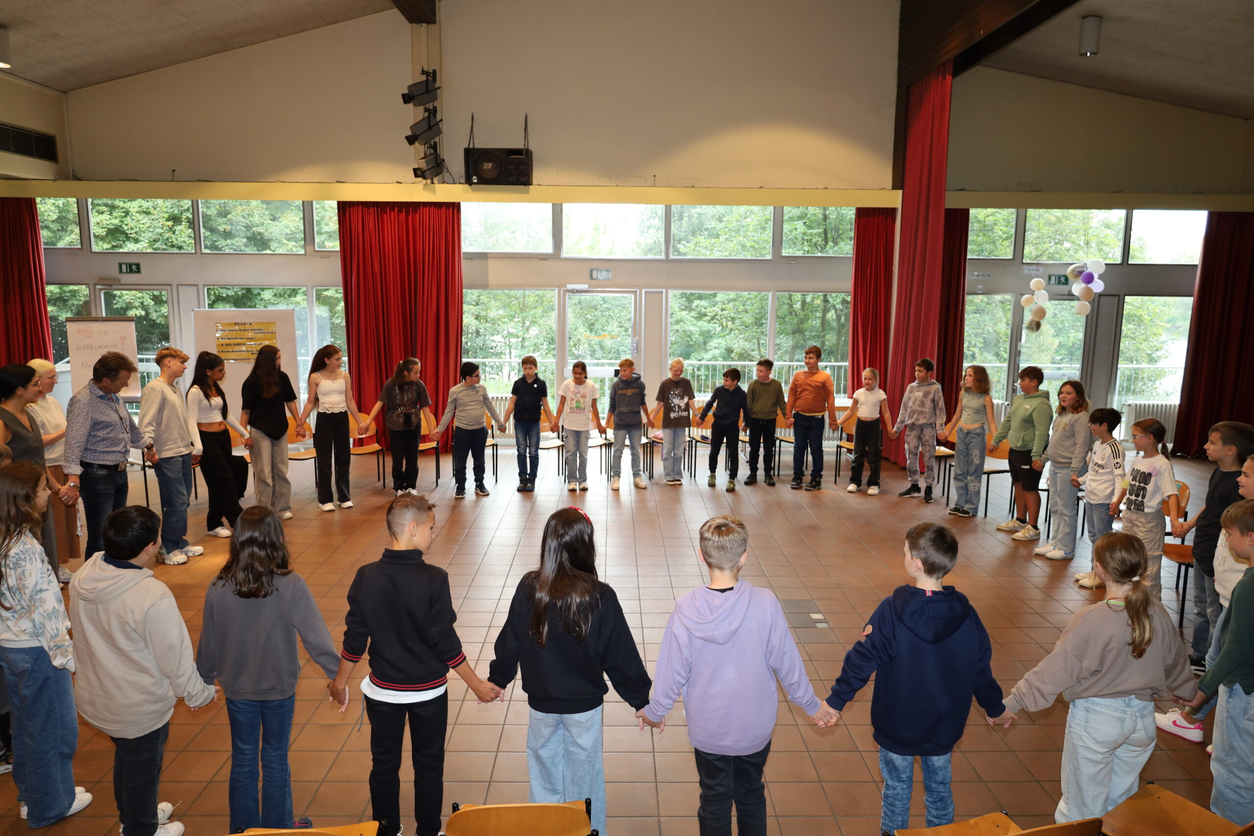 Im September hatten die neuen 5. Klassen ihren Kennenlerntag im Mehrgenerationenhaus. Dieser Tag diente dazu, dass sich die Schülerinnen und Schüler untereinander besser kennenlernen und als Klasse zusammenwachsen. In lockerer und spielerischer Atmosphäre ging es aber nicht nur um Spaß, sondern auch um wichtige Themen wie Konfliktbewältigung und Streitschlichtung. Wie gehe ich mit Meinungsverschiedenheiten um? Was mache ich, wenn es Streit gibt?