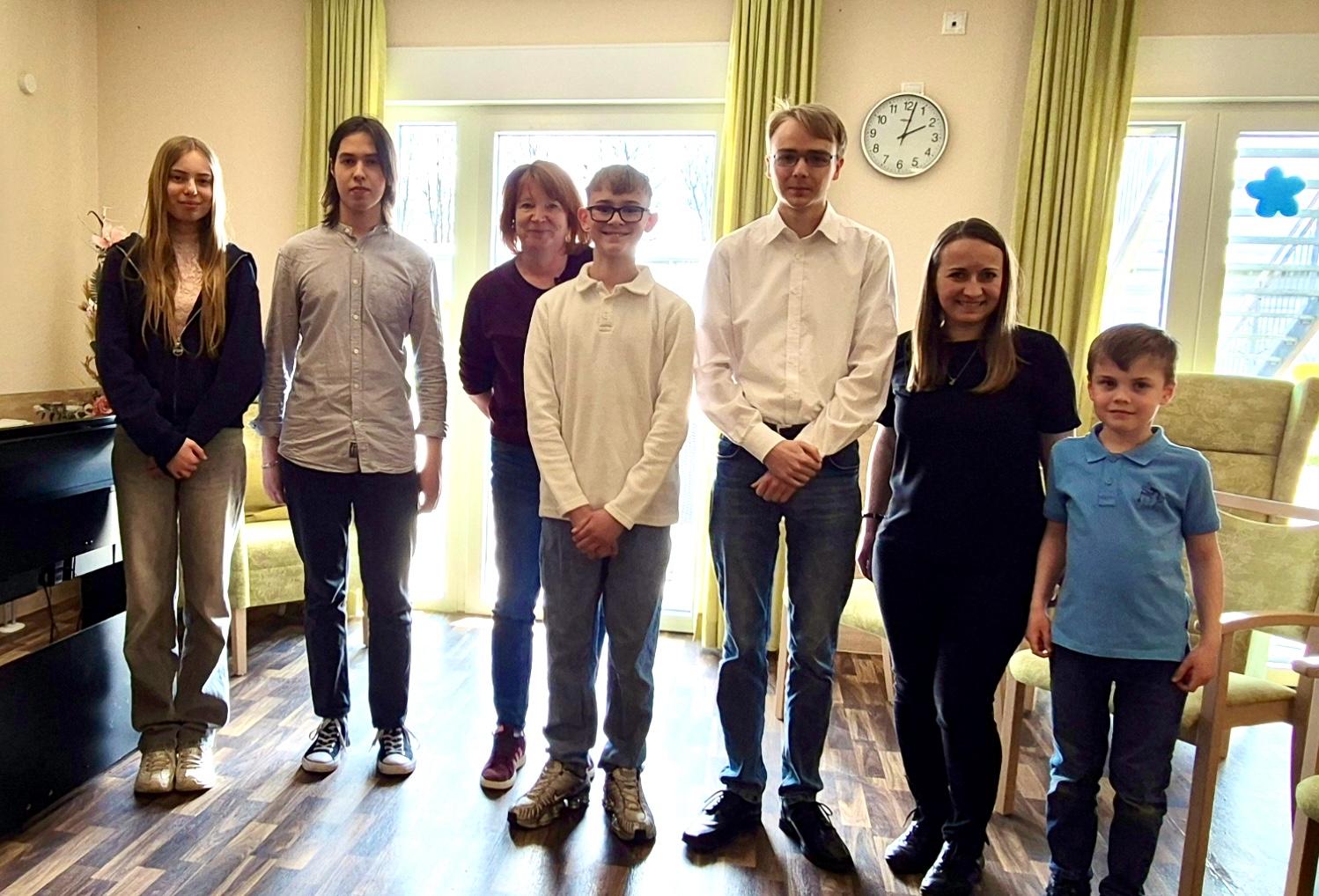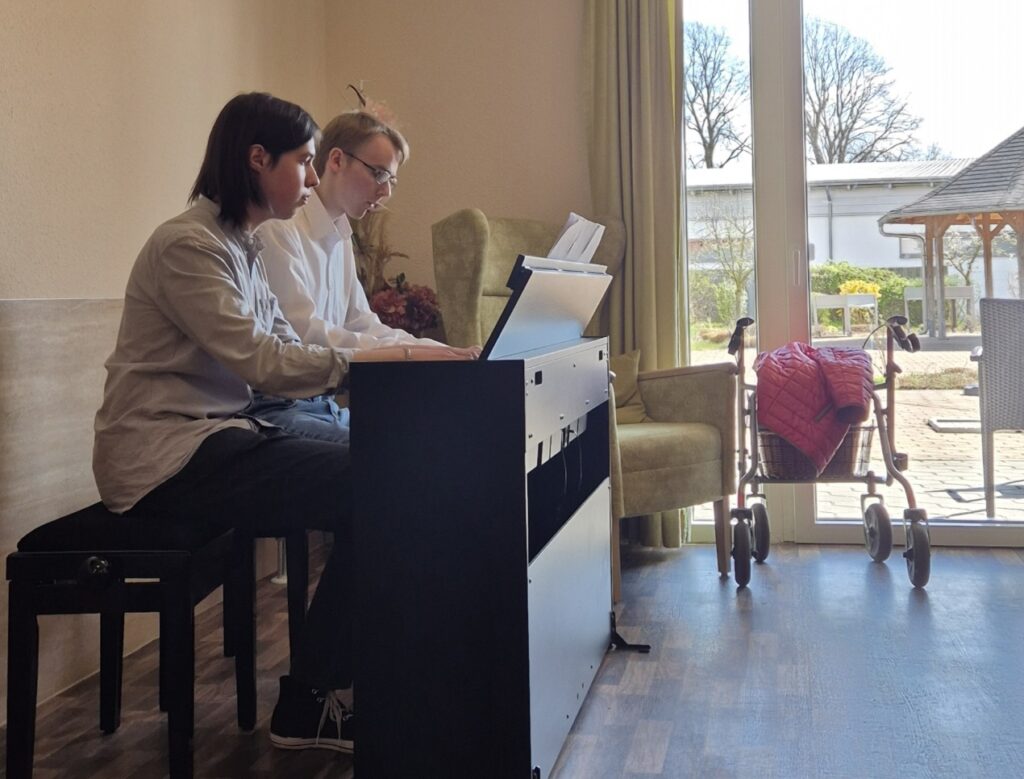 Die Senioren verfolgten das Konzert mit großer Aufmerksamkeit und spürbarer Rührung.Einen großen Dank für den herzlichen Empfang im Seniorenwohnpark „Drömling“ sowie an Frau Hahn und Frau Lampe, die das Konzert ermöglicht haben!
